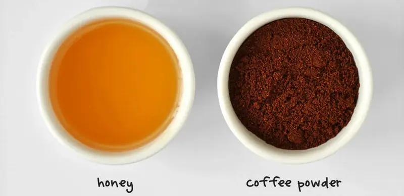Mix the coffee powder and honey in a small bowl until they form a smooth paste.