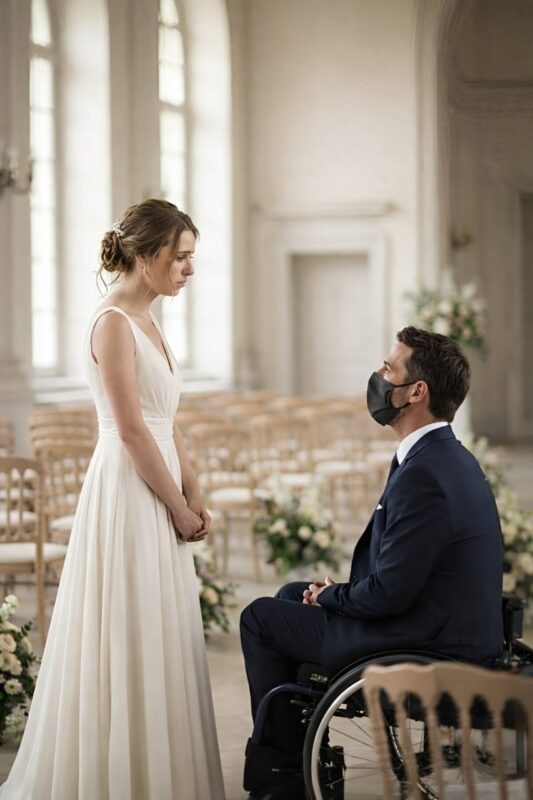 She wore a dress she hadn’t picked, spoke vows that didn’t feel like hers, and stood beside a man she barely knew. Seated in his wheelchair, Sebastian was calm, distant, unreadable.