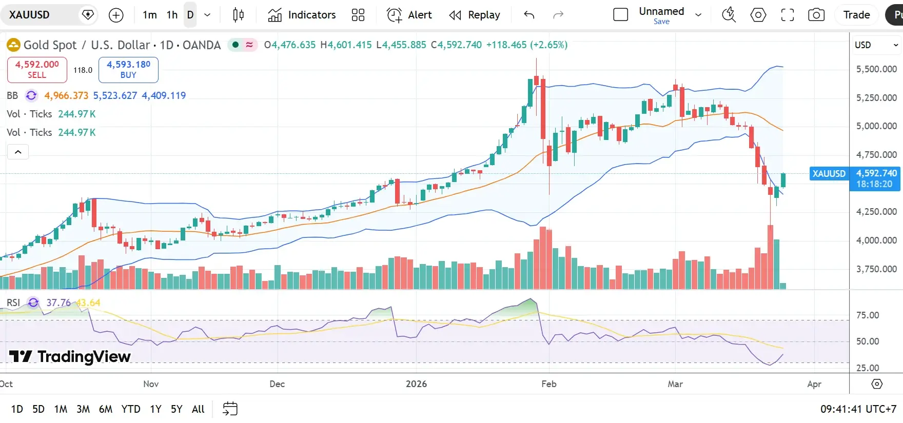 The precious metals market is witnessing significant volatility today. As of 11:20:45 AM on March 25, 2026, the international gold price (XAU) has reached a high of $4,572.94 USD per ounce.