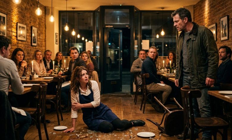 The newcomer’s eyes moved slowly across the shattered glass, the frightened diners, and finally rested on Emily lying on the floor.