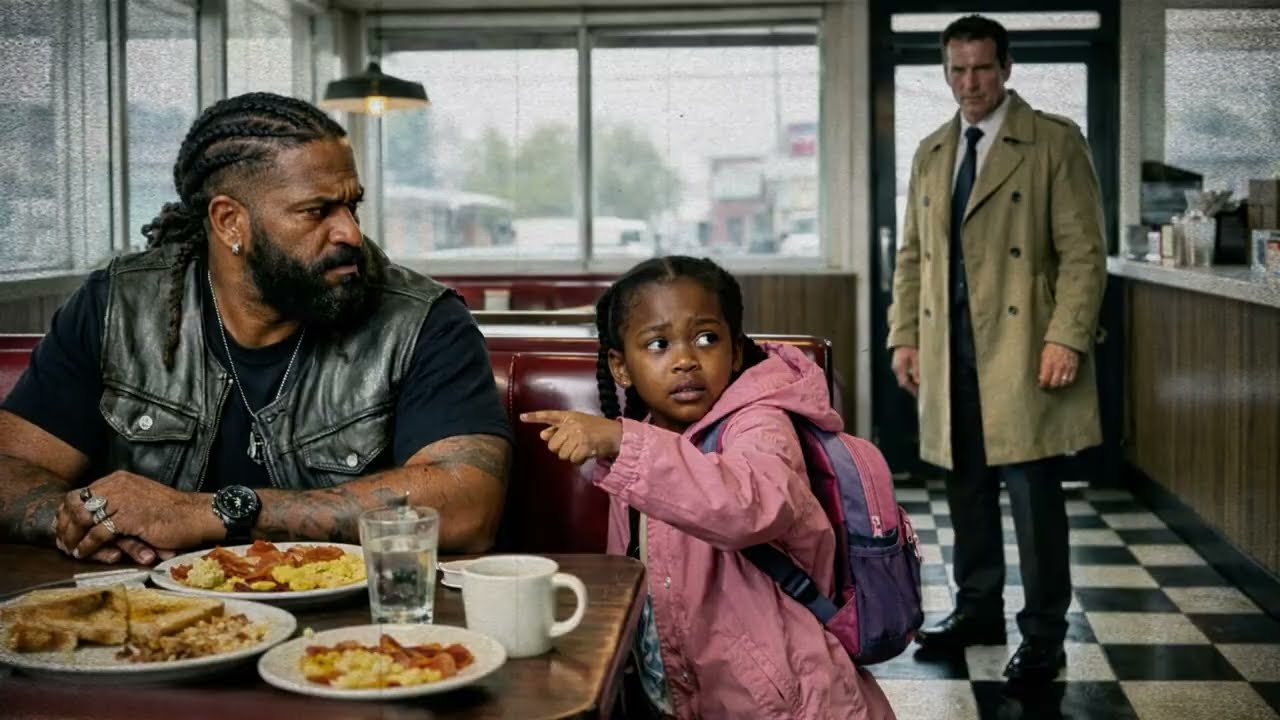 On a cold afternoon at a forgotten roadside diner, a little girl in a faded pink raincoat crossed the room, gripped the leather vest of the most dangerousl looking man in the building, and whispered seven words that neither of them would ever forget. She wasn’t looking for a hero. She was looking for someone scary enough to make a very bad man back down.